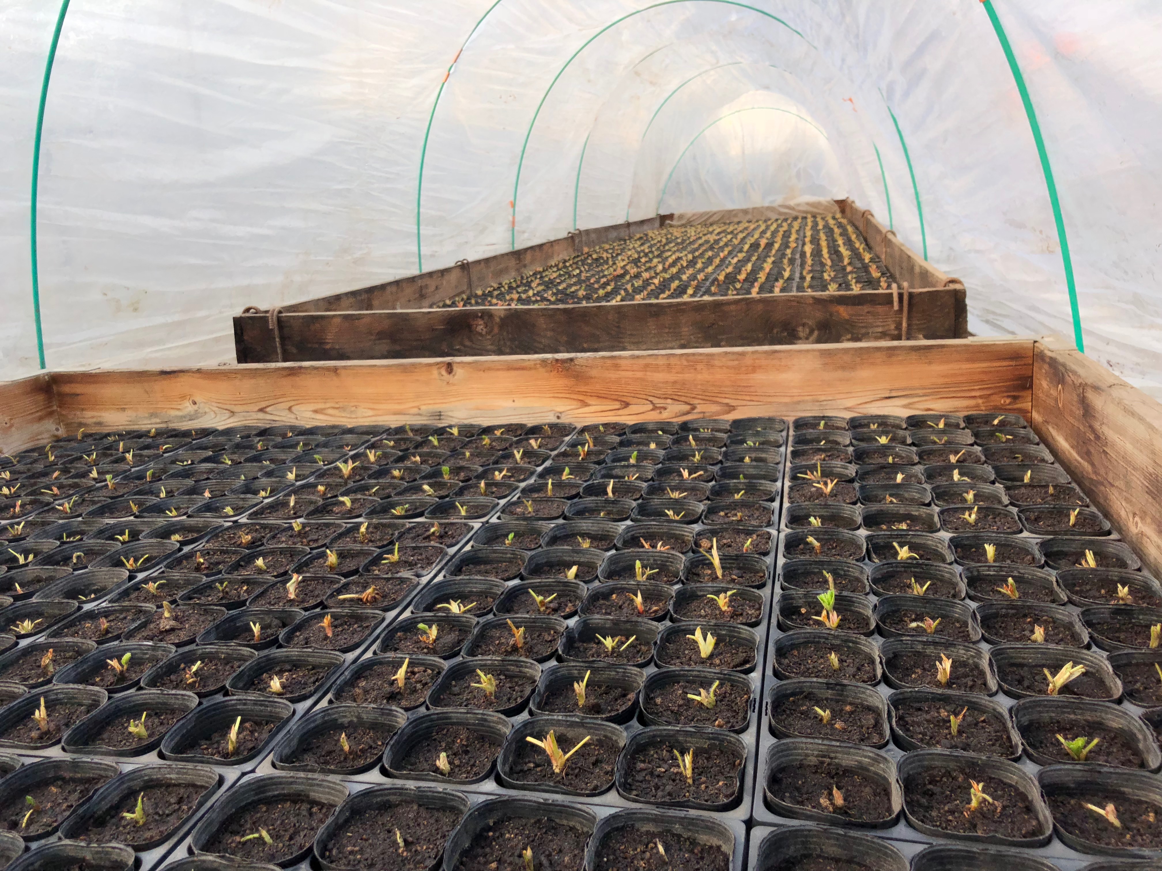 今年の定植予定の6300株のポット受けを終えました。ロットが1箱400株からなので予備で800株頼んでいたのですが今年はすずあかねの親苗の生育が悪くすずあかねの苗が8%減で生産者に渡されました。ちょっと予備が減っただけなので、まぁ良しとしましょう♬